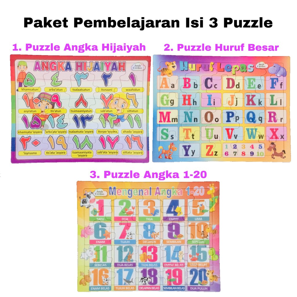 Mainan Pintar Paket Isi 3 Puzzle Angka Hijaiyah Huruf Besar Angka 1 20 Shopee Indonesia