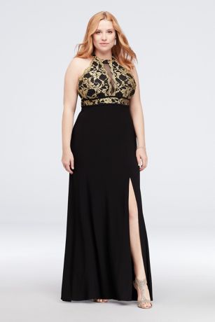 Gold Lace High Neck Halter Mermaid Plus Size Gown David S Bridal