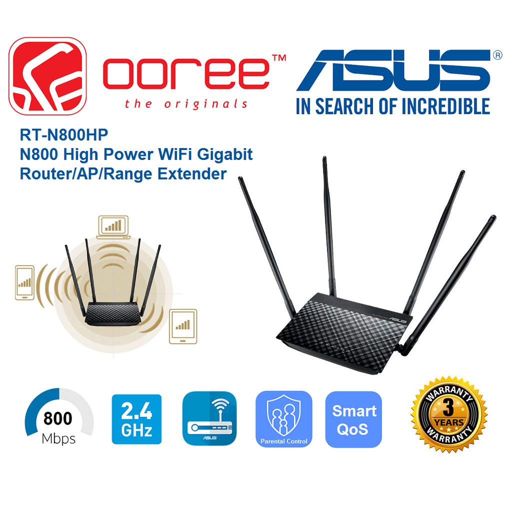 Asus Rt N800hp N800 High Power Wifi Gigabit Router Ap Range Extender With Parental Control And High Gain Antenna Shopee Singapore